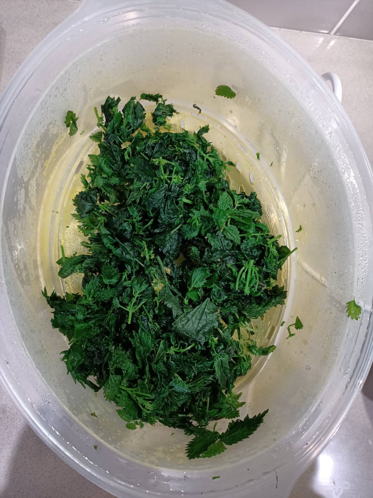 I placed the nettle in a bowl, to which I added the following: