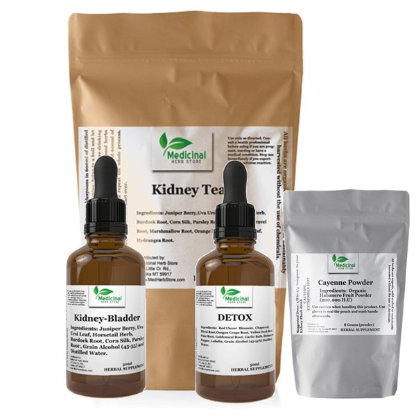 Kidney Bladder Plus Formula, Kidney-Bladder Tea, Detox Formula, Cayenne Powder (25g).