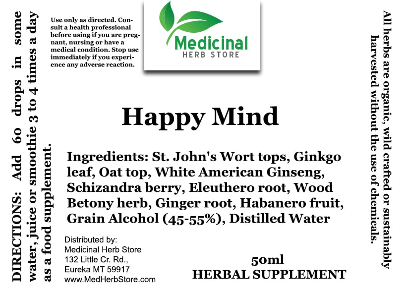 Ingredients: St. John’s Wort tops, Gingko leaf, White American Ginseng, Oat top, Schizandra berry, Eleuthero root, Wood Betony herb, Ginger root, Habanero fruit.